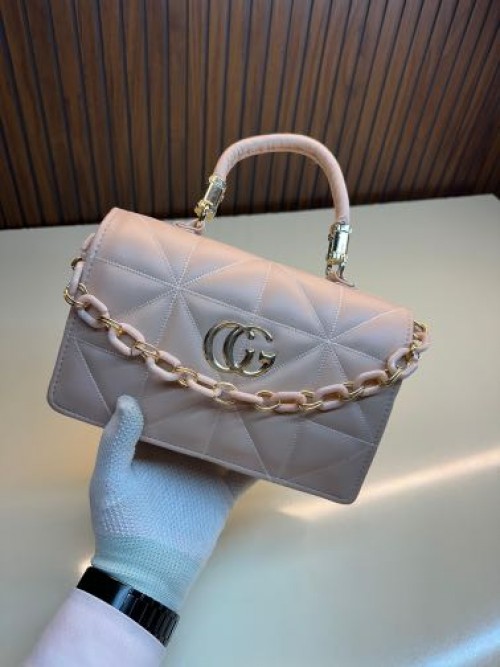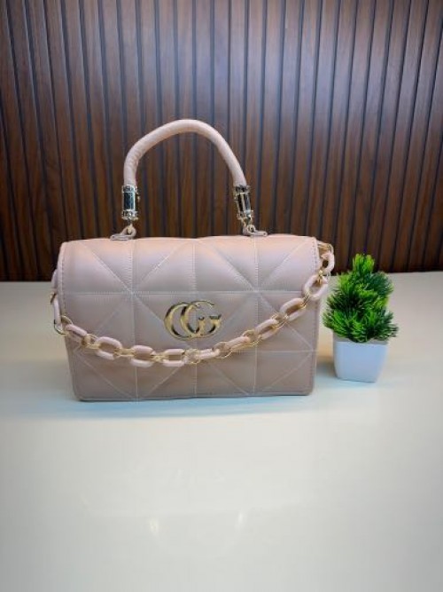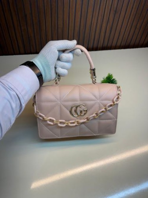 Liora Embroidery Design Handbag With Chain And Shoulder Strap Pink B102