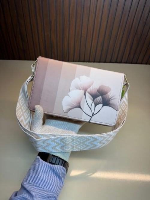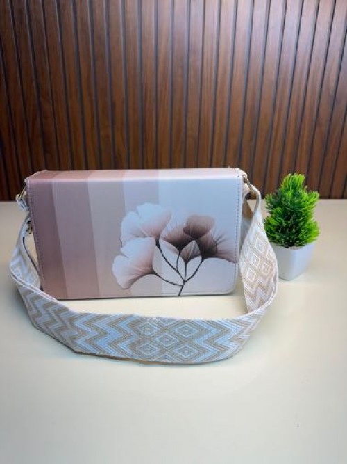 Liora Floral Printed Sling With Textured Belt Cream A106